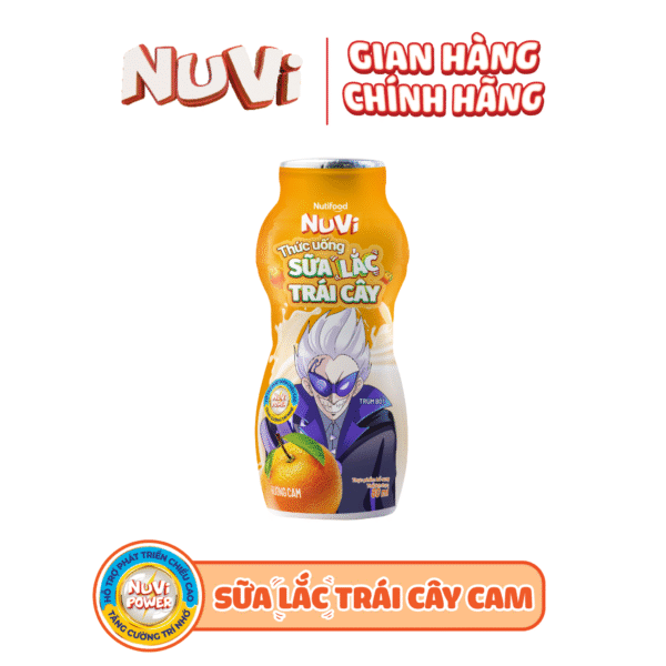 THÀNH PHẦN: Nước, đường, xirô fructoza, sữa bột (20 g/l), nước ép táo hoàn nguyên (30 g/l), chất ổn định (466, 418), chất béo thực vật, chất điều chỉnh độ acid (270, 330), hương liệu giống tự nhiên (hương cam và hương ngọt), vitamin (B1, B3, B5, B6, A, D3). Có chứa sữa.